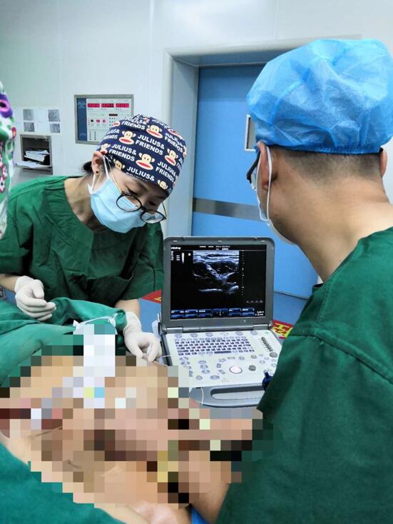 邢蔚副教授为手术患者施B超引导下神经阻滞治疗