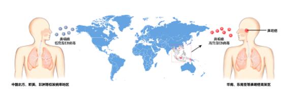 虽然EB病毒感染在全球人群中广泛存在,但鼻咽癌却仅在中国华南、东南亚、地中海和格陵兰岛等局部区域高发。其中,中国广东地区鼻咽癌的发病率位居首位,每年10万人中有20-40人被诊断为鼻咽癌,是其它低发病率地区的将近20倍。因此,鼻咽癌也被称为“广东癌”,是广东地区重大的健康问题。中山大学肿瘤防治中心几代医学科学家都把它作为研究重点,试图解答:为什么中国华南地区鼻咽癌发病率如此之高?