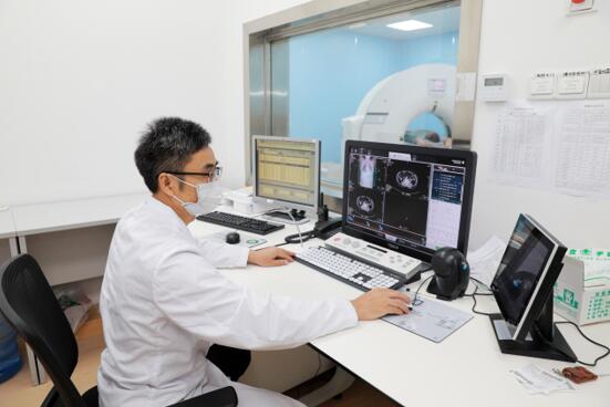 中肿MR室,医生正在操作国产MR磁共振为病人做检查