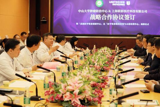2019年6月11日,中山大学肿瘤防治中心与上海联影医疗科技有限公司签署战略合作协议,双方将聚焦科技创新,共建“高端医学装备创新中心”与“医学装备临床应用与示范培训中心”, 并在AI相关技术开发、智慧医疗、5G医疗应用等方面开展深度合作,以进一步推动国产高端医疗设备和医学诊疗技术的创新研究和技术孵化,打造世界一流的医疗装备创新、技术成果转化示范基地。