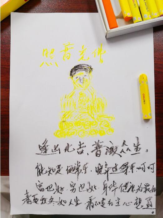 纵使不幸患病,可他们仍然心怀希望,战胜病魔。正如他们的画作,红色、笑脸、小花、彩虹,还有佛光。