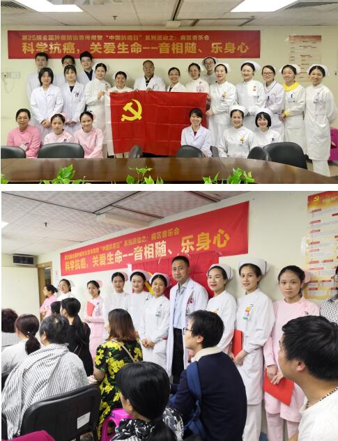 在乳腺科科主任谢小明、党支部书记王曦的带领下,乳腺科医护团队在百忙中精心构思、周到布置、热情参与,一群党员们和年轻的团员积极分子们用爱心、专业和真诚为病友奉献了一场精彩绝伦的音乐会;在这春意盎然的季节,用动人的音乐为听众编织明天的梦想,畅享未来的希望。
