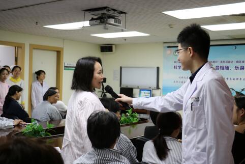 其后由乳腺科周梅梅老师为听众介绍乳腺科的音乐治疗,希望音乐能给每一个人带来快乐,放下烦恼,释放情绪。周梅梅老师还推荐了一些能疗愈心灵、疗愈疾病、振奋人心、激发斗志的曲目。