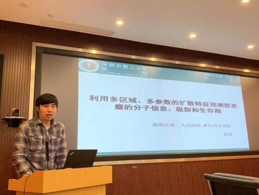 林海,深圳市第二人民医院神经外科李维平院长课题组,报告题目:利用多区域多参数的扩散特征预测胶质瘤的分子信息、级别和生存期