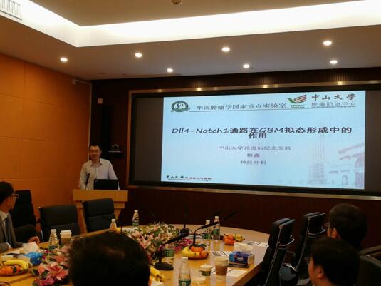 临床研究交流由中山大学肿瘤防治中心神经外科牟永告主任和放疗科夏云飞主任主持。颜光美教授带来的“M1治疗胶质瘤的药效学与药动学研究”,将本次交流会议推向了高潮。颜教授提出利用MI溶瘤病毒治疗高表达MI受体的胶质母细胞瘤的方案,鼓励与会专家积极参与临床试验,推进该新型治疗方案尽快运用于患者。此外,来自神经外科、影像科、核医学科、放疗科等多个临床科室的精彩报告也激起了大家的热烈讨论。其中,赛克和郭琤琤两位一线医生恩别介绍了一项临床试验研究的最新进展,深入剖析了临床试验设计的重要环节,给在座的青年医生很大的启发。
