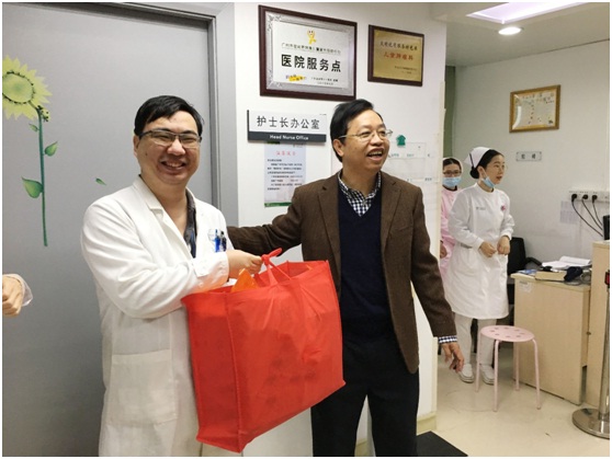 每到一处,中心领导与员工亲切交谈,拱手相祝,送上新年大礼包和甜甜蜜蜜的新年糖。温暖的祝福,爽朗的笑声传遍中肿。