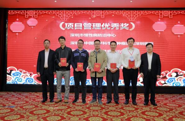 在上一年度工作中,广州和深圳均超额完成了国家下达的筛查任务,完成5种癌症临床筛查的总量超过11000人次,检出各类癌症的阳性人群达到1400多人。广东省癌症中心和深圳市慢病院、深圳市肿瘤医院分别获得了国家项目办颁发的2018年度省级优秀管理单位和最佳社会影响力奖等国家级的奖励称号。同时,在我省各级项目参与单位中也涌现出了一批优秀的集体与个人,广东省癌症中心特评出五大奖项以表彰他们对我省城市癌症早诊早治项目做出的杰出贡献,并在本次启动会上对获奖单位和个人进行颁奖。