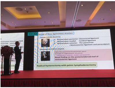 本届学习班邀请到日本东京帝都大学妇瘤专家Shingo Fujii教授,为大家带来了《广泛子宫切除的血管神经精准解剖》的讲座。Fujii教授曾担任国际妇癌协会的主席,在国际妇科肿瘤界享有很高的声望。这次,Fujii教授结合血管神经分布的解剖基础,用形象的解剖示意图,向大家展示各层面血管神经的解剖定位和手术切除范围。并通过手术视频演示,逐步展示了如何进行保留盆腔神经的广泛子宫切除手术。Shingo Fujii教授的细致入微的讲课方式赢得满堂喝彩。参会代表们,包括在场的从事妇瘤专业多年的专家都对他精准解剖的手术技艺和别具一格的手术教学赞叹不已。Fujii教授的讲课将本次学习班带到一个高潮,大家非常珍惜这一宝贵的学习机会,纷纷拍照录像,学习热情高涨。