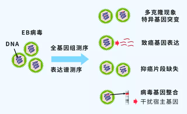 结果发现,NK/T细胞淋巴瘤中存在特异的EB病毒基因组序列突变特征,而且EB病毒编码基因表达图谱与鼻咽癌、胃癌等EB病毒相关肿瘤存在显著区别,说明EB病毒可能通过独特的分子机制参与NK/T细胞淋巴瘤发生发展,提示存在特定转化能力的疾病特异EB病毒亚型。
