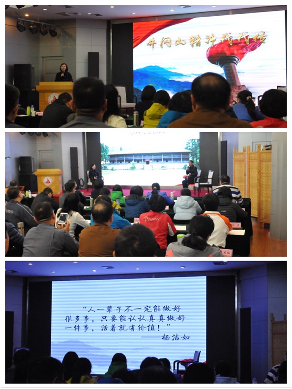 在第一堂讲座《井冈山斗争与井冈山精神》中,赖宏教授从革命如何走向成功、让井冈山精神放射出新的时代光芒两方面讲述了井冈山精神的形成和深刻精神内涵。“大革命失败后,以毛泽东为首的中国共产党人坚持走群众路线,实行工农武装割据,开展土地革命,最终踏上了一条中国式民主革命独特道路。”坚定执着追理想、实事求是闯新路、艰苦奋斗攻难关、依靠群众求胜利,历经岁月淬炼的井冈山精神在新时代仍放射着光芒。