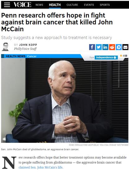 报道链接:https://www.phillyvoice.com/penn-medicine-research-brain-cancer-john-mccain-glioblastoma/