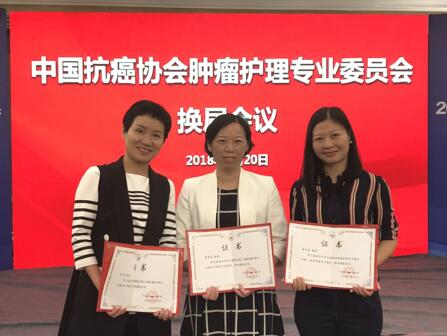 与此同时,我院胸科刘莉护长被选为中国抗癌协会第二届肿瘤护理专业委员会常务委员,黄中英副主任护师被选为中国抗癌协会肿瘤护理专业委员第一届青年委员。