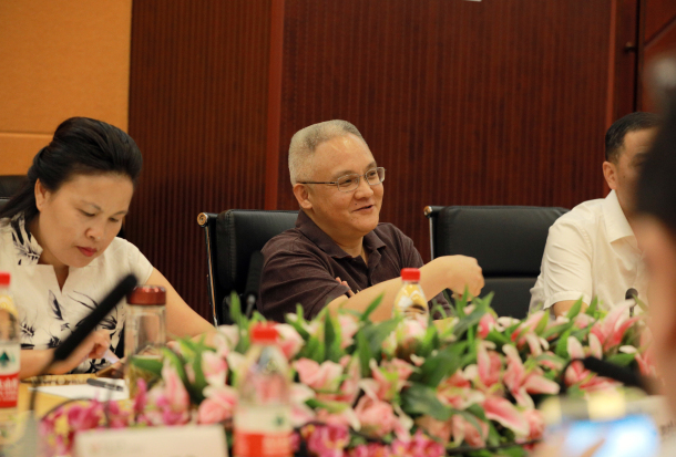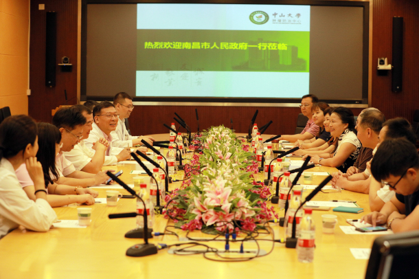2018年8月9日上午,南昌市政府龙国英副市长、马骏副市长(挂职,中山大学副校长)一行9人来访我中心洽谈合作帮扶事宜,中心领导徐瑞华院长、武少新书记、马骏常务副院长、彭望清副书记、何韵院长助理及相关科室负责人参加了座谈会。