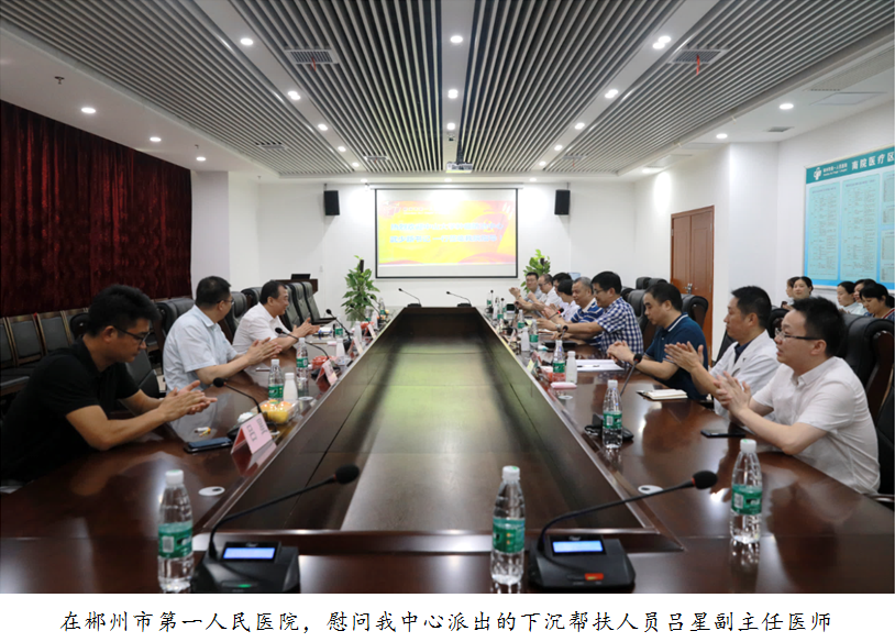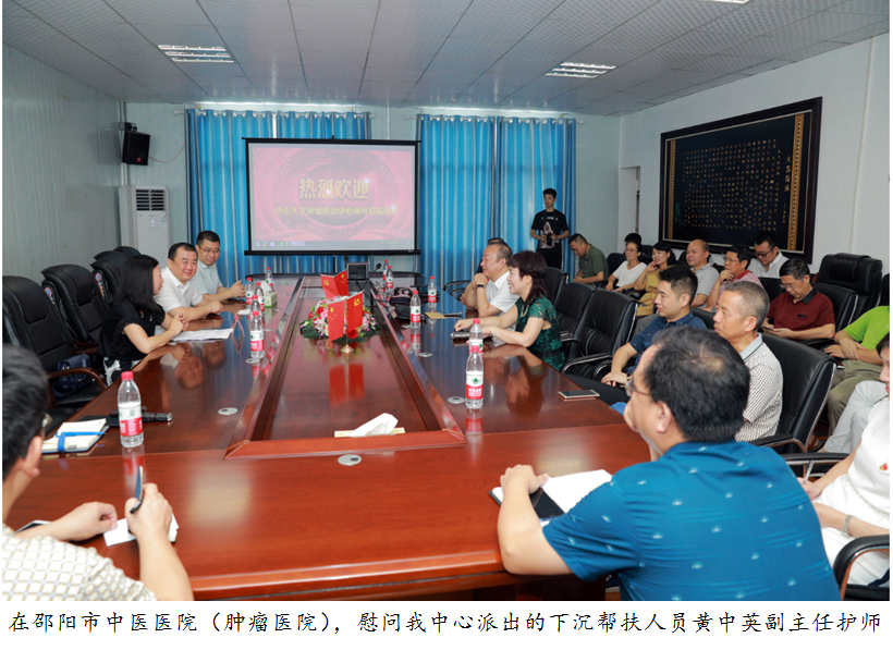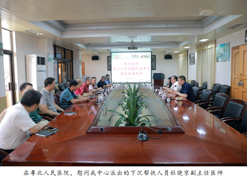 7月2日至4日,中心党委书记武少新、院长助理何韵一行,先后到湖南省邵阳市中医医院(肿瘤医院)、郴州市第一人民医院、广东省韶关市粤北人民医院,分别慰问我中心派出的下沉帮扶人员黄中英副主任护师、吕星副主任医师、杜晓京副主任医师。为落实广东省卫计委开展城市三甲公立医院优秀卫生技术人才下基层项目的通知,三位下沉人员分别在上述医院开展半年的帮扶工作。