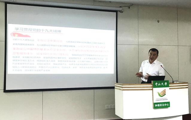 首先,中心党委武少新书记做了以贯彻落实党的十九大会议精神的《新时期 新作为》报告,武书记向在场的老教授们传达了党的十九大精神以及习近平总书记两会期间的重要讲话,传达了中山大学第十三次代表大会的重要精神,并紧密结合中心发展的实际情况,详细介绍了中心发展的 “三步走”战略以及进军世界顶尖的癌症中心的宏伟目标。武书记还提出了“四新”希望,希望老教授协会能够搭建“老有所学”新平台,迈出“老有所养”新路子,拓展“老有所为”新领域,再谱“老有所乐”新篇章,助力“健康中国”战略。同时,他也希望中心老教授协会成为温馨、和谐、健康、向上的“老教授之家”。武书记的报告具有很强的现实性、前瞻性和指导性,让老教授们了解到年轻的中心全体员工在党中央、学校与中心党委领导下凝心聚力共筑中华民族伟大复兴中国梦;让所有在座的退休教授感到无比的欢欣和鼓舞。