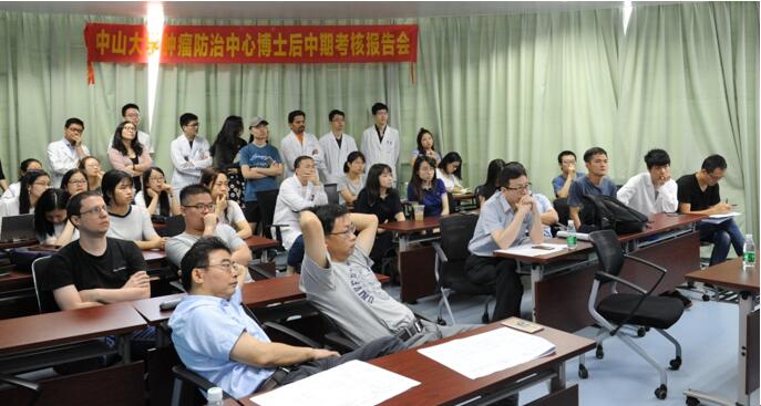 中山大学肿瘤防治中心2018年上半年博士后中期考核报告会于2018年5月23日上午在本中心2号楼召开。在站博士后、合作导师、博士后管理小组专家及旁听的科研工作者、研究生等100多人参加了会议,中山大学负责博士后工作的陈遵科长也应邀出席。曾木圣副院长主持了会议。