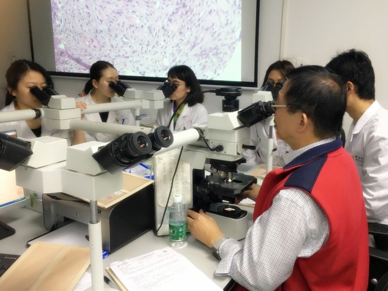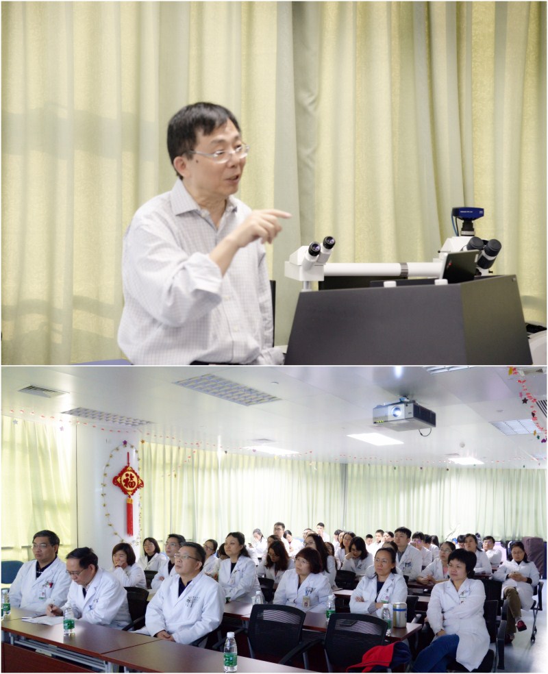 2017年12月6日-8日,美国南加州大学医学院洛杉矶儿童医院病理系、外科病理学主任——王亮教授到我中心病理科进行学术交流与讲座。王亮教授是国际神经母细胞瘤临床研究的知名专家,长期从事儿童病理相关的医疗和科学研究,擅长儿童常见疾病的病理诊断,曾在2010被美国《Pasadena》杂志评为“最杰出医生(TopDoctors)”,2012年获得美国《LosAngeles》杂志 “超级医生(SuperDoctors)”称号。这是王亮教授第二次来我中心讲课,骨肿瘤病理诊断是外科病理学的重点难点,同时也是现阶段我院亟待学习和提高的弱项,王亮教授结合具体病例介绍了常见软骨与骨组织肿瘤的诊断思路、镜下特征及分子进展,对加深我院病理医生对骨肿瘤病理认识及提高病理诊断水平都具有深远的意义。