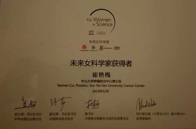 崔艳梅博士获得未来女科学家奖