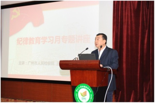 根据中心关于开展2016年“两学一做”和“纪律教育学习月”活动的部署, 11月23日下午,中心举办了2016年度纪律教育学习月专题讲座。讲座邀请了广州市人民检察院副检察长、反贪局局长王雄飞做廉政专题报告,中心党委书记武少新主持了报告会,中心领导班子、业务科室正副主任、支部书记、副高以上人员、科护长、区护长、行政后勤科室全体人员共约300人参加了报告会。