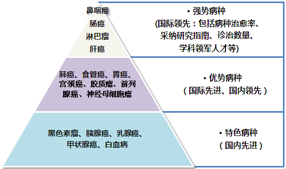 根据中山大学肿瘤防治中心“十三五”发展规划,未来中心将加速世界一流肿瘤中心建设,助力肿瘤精准医学的发展,提出建设“国内专科布局最全、服务规模最大、诊疗水平最高,综合实力国际一流的肿瘤中心”的战略发展目标。首先,医院会借此新院区建设契机进行学科的重点规划与布局:补全肿瘤专科,打造强势专科,发展优势专科,形成以点带面齐头并进的发展态势。