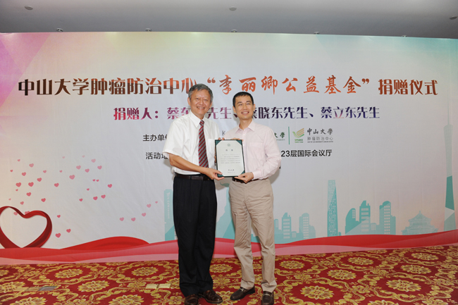 (中心办报道)昨天下午,由广东省长江公益基金会、中山大学、中山大学肿瘤防治中心共同主办的“中山大学肿瘤防治中心‘李丽卿公益基金’捐赠仪式”在我中心国际会议厅举行。