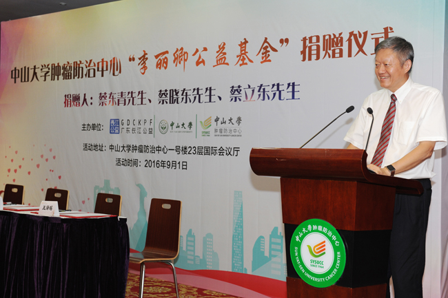 陈春声书记代表中大感谢蔡氏兄弟的善举,他指出,该公益基金以蔡氏兄弟的母亲命名,体现了一种孝心,一种慈善之心。这笔基金用于中山大学肿瘤防治中心的人才培养以及医疗科研,恰到好处。近年来,肿瘤医疗技术突飞猛进,有这么一个助力推动肿瘤专科的发展,是个很好的善举,整个社会健康事业的发展都需要这样的善举。