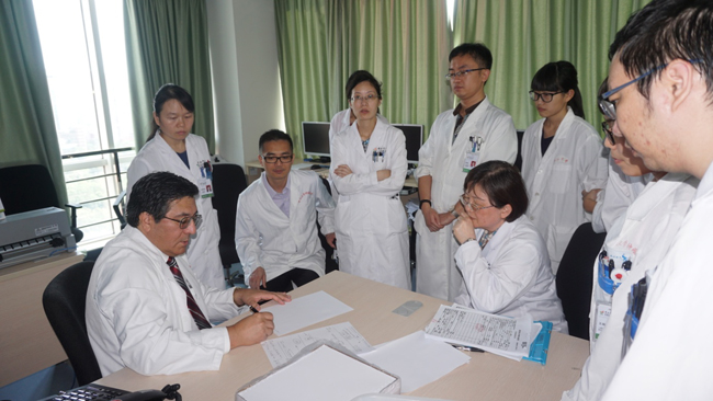 Nunez教授的专业特长重点在于儿童白血病/淋巴瘤的诊断和治疗,临床研究经验丰富,其到访为我们带来了关于儿童白血病/淋巴瘤诊治的一些新视野。在儿童肿瘤科访问期间,Nunez教授与全体儿童肿瘤科医生一起查房,讨论病情。我科医生兴致高昂,争先恐后地与Nunez教授交换意见,内容涉及儿童白血病/淋巴瘤的临床诊断、危险分层、治疗策略、新药研究等大量前沿问题,并比较MD Anderson 癌症中心和我中心对于某些诊治方法的异同,增进相互之间的了解。