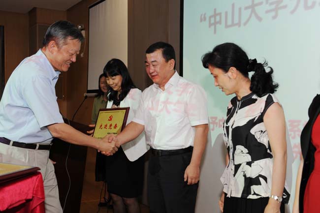 中山大学党委陈春声书记为“先进党委”获奖单位颁奖