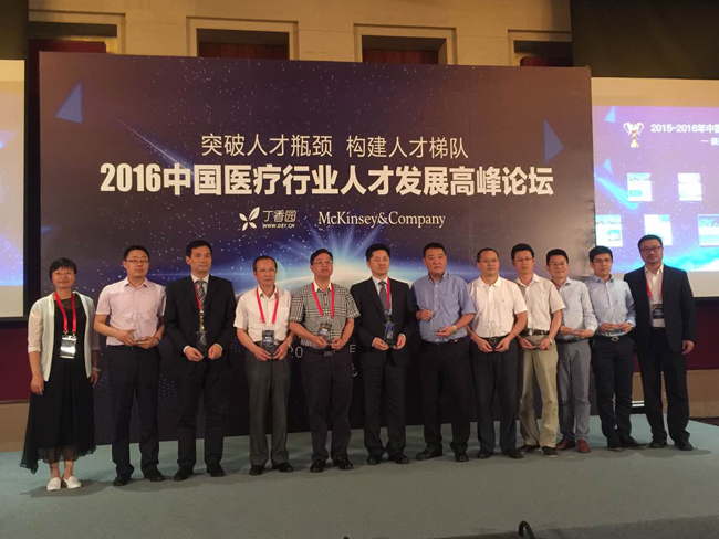 在“最佳雇主调查”排行榜发布会暨2016年中国医疗行业人才发展高峰论坛上,我中心彭望清副书记代表中心领奖,并受邀作了题为“搭建金字塔梯队,锻造创新型团队”的主题报告,介绍了我中心创新型人才团队建设的经验与做法;我中心鼻咽科陈明远主任医师作为唯一一家受邀医院的人才代表现身说法,介绍了自己在最佳雇主医院的成长经历与感悟。