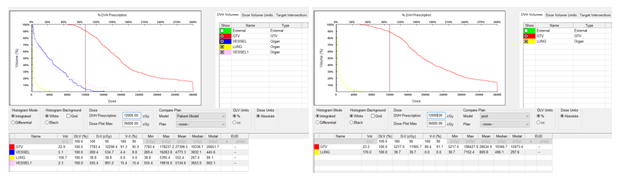 术前、术后DVH放射剂量对比