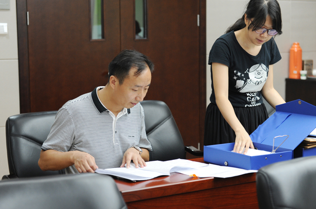检查组王景峰书记和许俊卿书记认真查阅资料