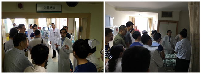 上午9:00,学员们参观我院神经肿瘤诊疗相关学科,重点是分子诊疗中心、生物治疗中心、放疗中心和实验研究部。