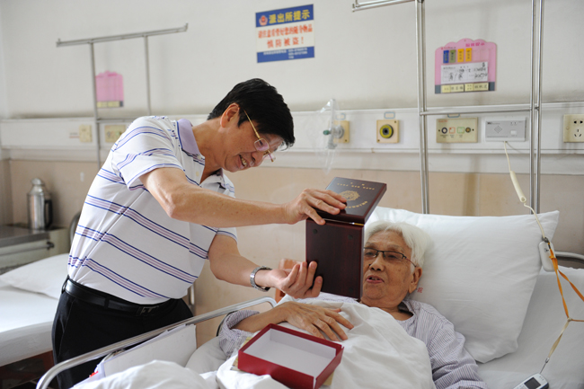 李建超书记在去年七一前夕前往医院看望慰问中心抗战老兵蒲广寒老书记