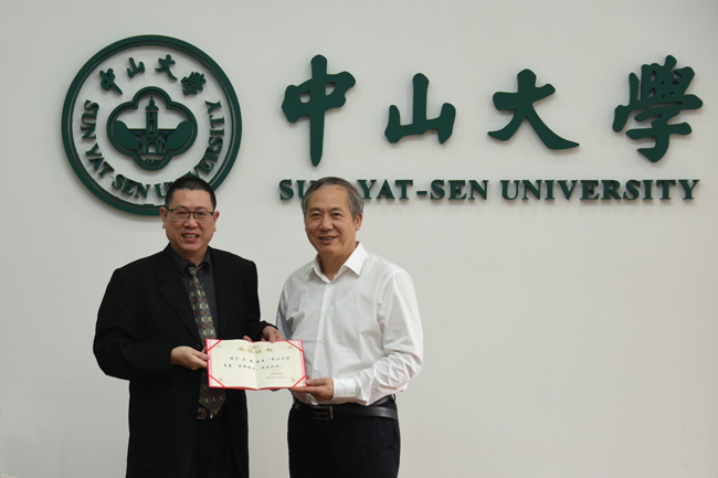 罗俊校长为马骏教授颁发荣誉证书