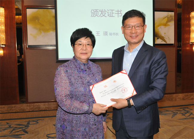 中国抗癌协会秘书长王瑛教授为主任委员徐瑞华教授颁发聘书