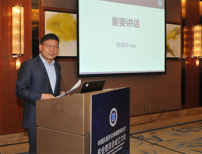 徐瑞华主任委员在讲话中指出,能够当选中国抗癌协会肿瘤靶向治疗专业委员会首任主委,是一份光荣且沉甸甸的责任。肿瘤精准治疗的理念在业界已达成共识,希望能够借由新成立的肿瘤靶向治疗专业平台,顺应国家精准医疗战略,我们全体委员能够齐心协力做好各项工作,组织不同层次学术交流会议和不同层面的继续教育,开展多中心研究,带动肿瘤靶向治疗专业队伍发展壮大,推动肿瘤靶向治疗与精准医学的学科发展,最终使我国肿瘤总体诊治水平显著提高。