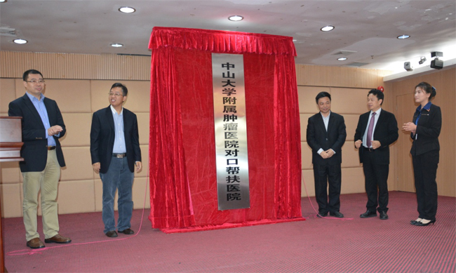 此次活动得到了揭阳市卫计局和普宁市卫计局的积极支持,4月16日上午,揭牌仪式由普宁市卫计局副局长陈胜鑫同志主持,揭阳市卫计局局长李春明,普宁市政协副主席、普宁市人民医院院长陈阳生等医院领导班子和相关职能部门负责人以及我院医疗队彭望清、何韵、吴秋良、李艳芳、史艳侠、张旭、丁培荣、郑云、李永红、何立儒、蔡培强、刘万里、陈伟超、董培、江小简等参加启动仪式,并为中山大学附属肿瘤医院对口帮扶普宁市人民医院揭牌。