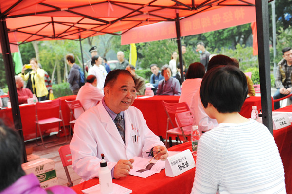 义诊现场挤满了前来咨询的市民