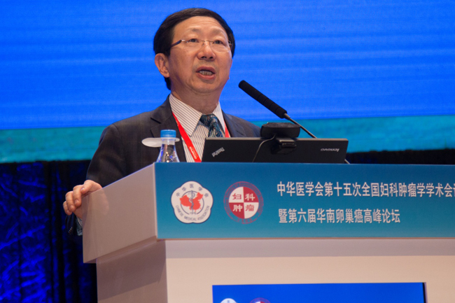 2016年3月11-13日,由中华医学会妇科肿瘤学分会主办,中山大学附属肿瘤医院协办的第十五次全国妇科肿瘤学学术会议暨第六届华南卵巢癌高峰论坛在广州白云国际会议中心顺利召开。来自海内外超过100位专家学者和嘉宾出席了本次大会,超豪华的阵容为参会的医生们带来精彩不断的学术盛宴。开幕式由中华医学会妇科肿瘤学分会候任主任委员谢幸教授和副主任委员刘继红教授主持,郞景和院士、中华医学会妇科肿瘤学分会现任主任委员马丁教授和前任主任委员沈铿教授、中华医学会金大鹏副会长、广东省医学会李国营秘书长、中山大学颜光美副校长以及中山大学附属肿瘤医院徐瑞华院长到场并致辞。