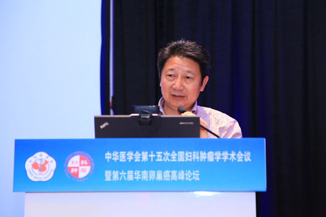 来自英国的George教授和Gourley教授介绍了在卵巢癌患者BRCA基因突变情况和PARP抑制剂应用的最新研究进展。北京大学人民医院的崔恒教授讲述了卵巢癌新辅助化疗(NACT)的应用,认为NACT能够提高手术满意率、减少术后并发症,但并不影响生存,术前NACT的疗程数与患者预后呈负相关。美国的卵巢癌初始肿瘤细胞减灭术的满意率明显高于欧洲,美国医生更强调减少NACT应用和手术技能的提升。中山大学附属肿瘤医院刘继红教授报告了铂耐药复发卵巢癌的治疗策略,提出了可能使耐药患者获益的紫杉醇剂量密集型化疗、靶向药物治疗、腹腔热灌注化疗、新药临床试验、放射治疗等治疗策略。四川省肿瘤医院张国楠教授从分子水平阐述了卵巢癌化疗耐药的机制,他认为TP53、K351N突变是卵巢癌铂耐药的重要因素;此外,阻断TLR-4/MyD88通路是降低紫杉醇耐药的关键。生物治疗也是卵巢癌的治疗手段之一,山东大学齐鲁医院孔北华教授认为在精准医疗时代,CAR-T疗法及免疫检查点抑制剂在卵巢癌治疗中已显示出优势。