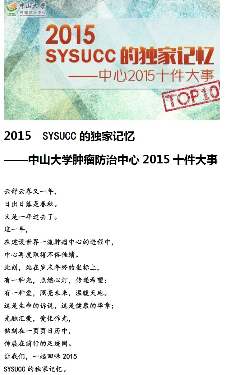 2015SYSUCC的独家记忆——中山大学肿瘤防治中心2015十件大事