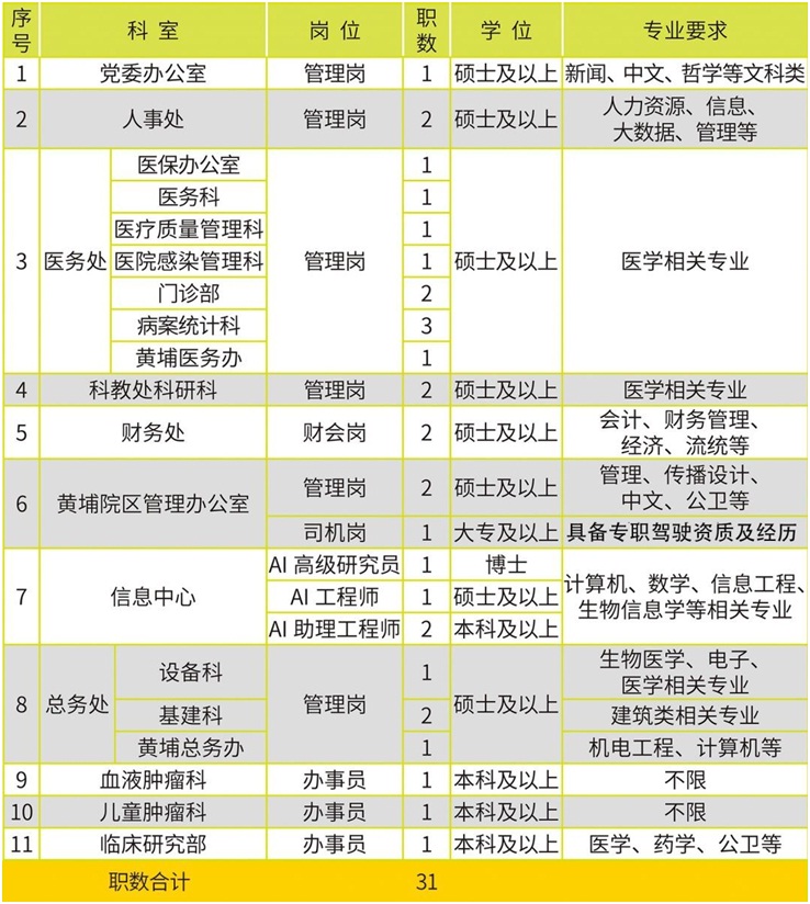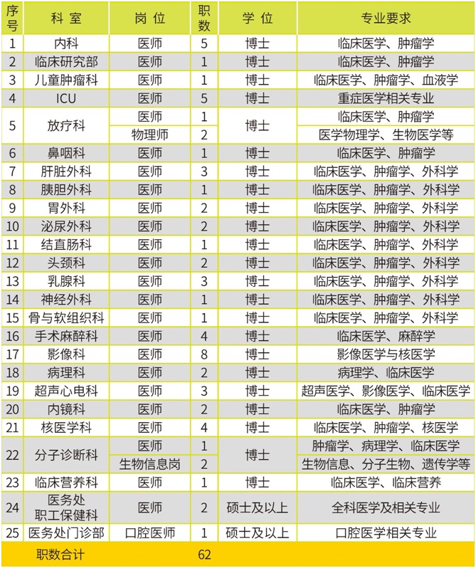 4、以上岗位招聘人员工作地点:中山大学肿瘤防治中心各院区。