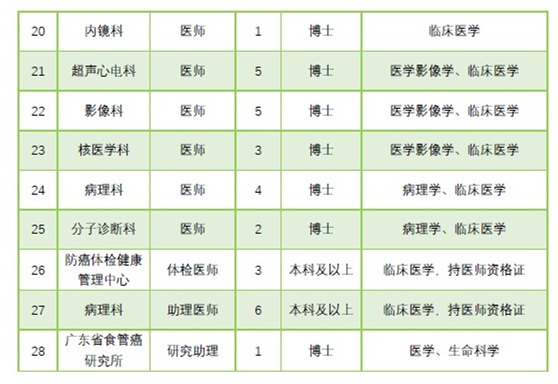 4、以上岗位招聘人员工作地点:中山大学肿瘤防治中心各院区。