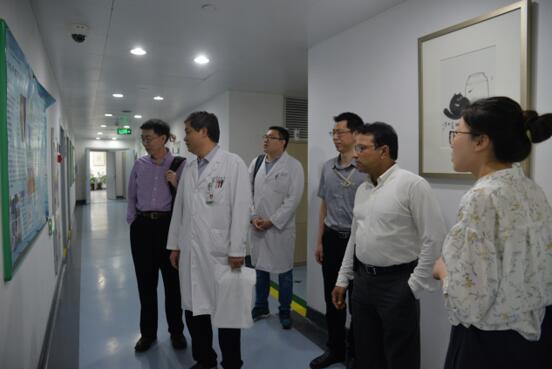 Dhanpat Jain 和张旭晨教授一行还参观了科室,科内齐全的设备及良好的工作环境给他们留下了较深的印象。而在听完科室主题画作“为病寻理”的解释后,两位教授都对科室走廊悬挂的小林老师的画作产生了极大的兴趣。