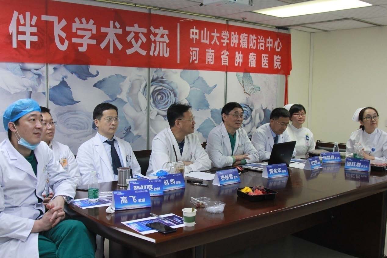 河南省肿瘤医院影像与微创介入科黎海亮主任首先作会议致辞,黎主任首先感谢我科派出强大的专家阵容参加此次“伴飞计划”学术活动,对我科创始人吴沛宏教授及现任的科室主任黄金华教授带领的微创介入团队对他们科室长期以来无私的支持和帮助表示衷心的感谢,并深情寄语通过“伴飞计划”作为纽带,多向我们学科团队学习取经,找准目标,使得科室的发展不断迈上新台阶。