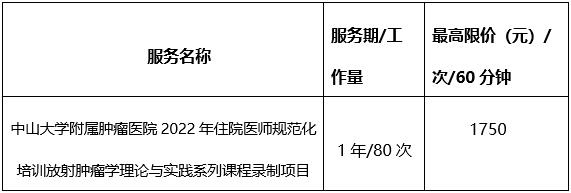 中山大学附属肿瘤医院2022年住院医师规范化培训放射肿瘤学理论与实践系列课程录制项目进行院内询价,欢迎符合资格条件的供应商参加。