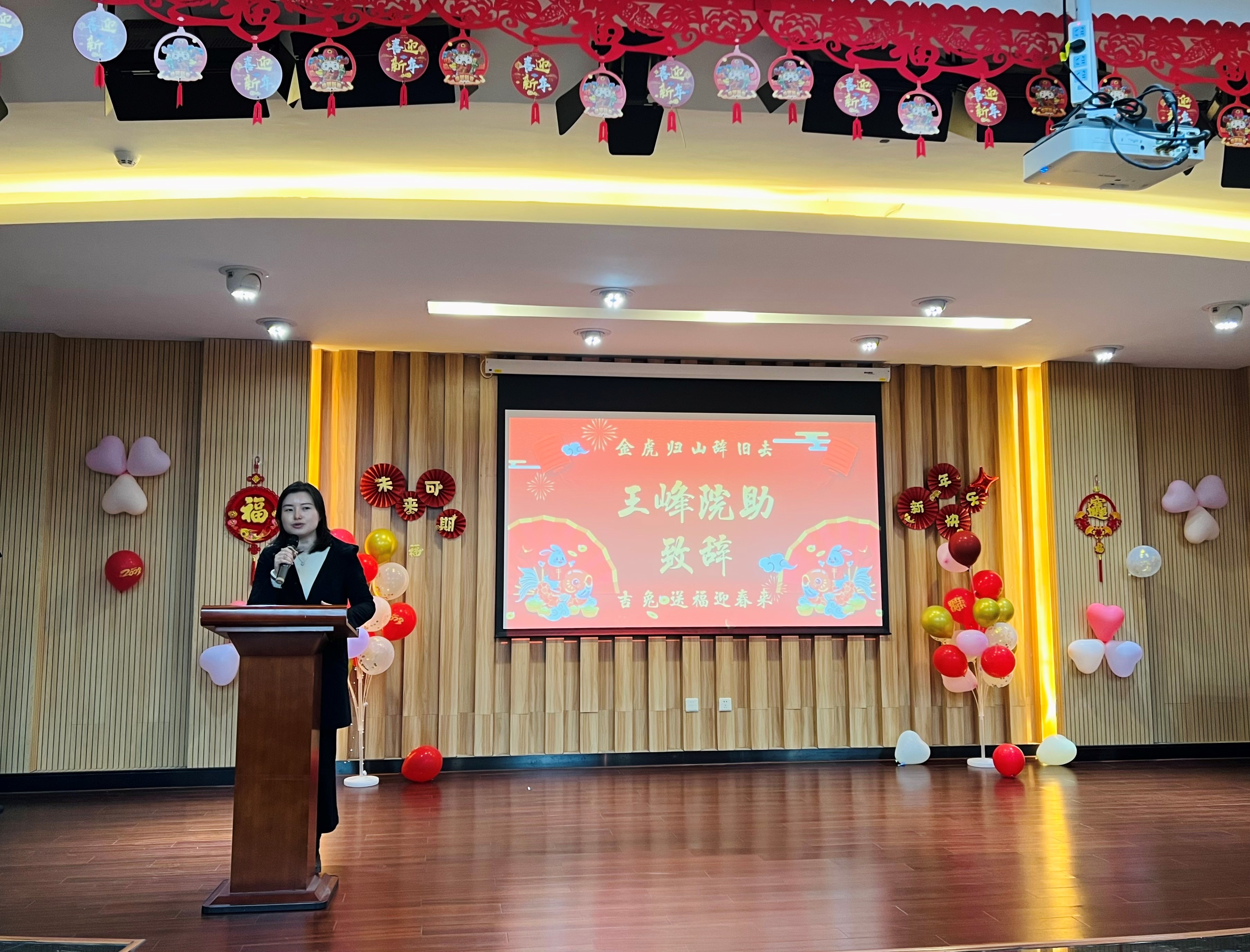 年会现场,流光溢彩,佳人笑颜。由刘宇英主任领唱的节目《欢乐中国年》,歌声宛转悠扬;新同事为晚会即兴书法贺新年,拉开了晚会的帷幕;娱乐爆笑又耐人寻味的小品“欢乐笑”引人深思;互动小游戏“抱团兔个吉利”将全场氛围推向了高潮;舞蹈“你笑起来真好看”洋溢着青春的阳光气息,赢得观众的阵阵掌声……精彩绝伦的节目表演,激动人心的幸运抽奖,让大家心潮澎湃、惊喜连连、欢呼不断。