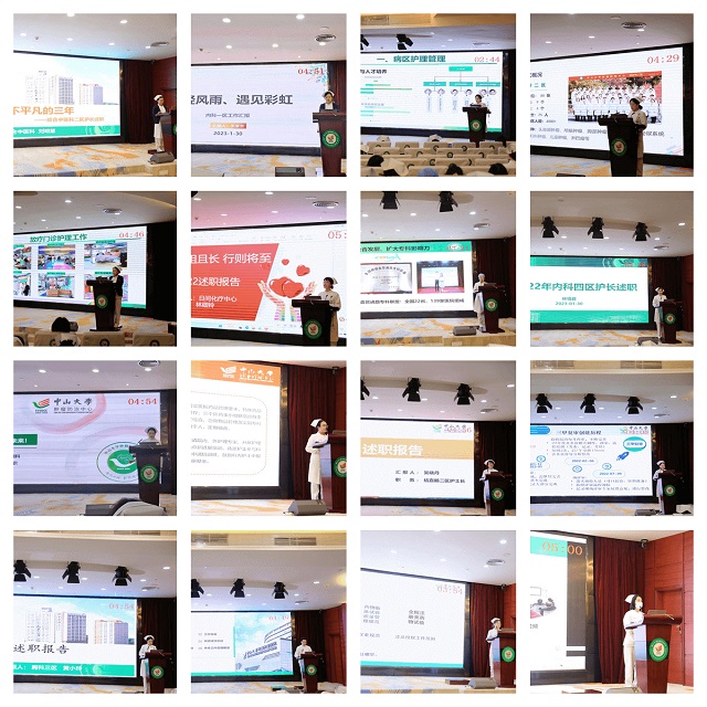 随后,16位新晋护士长逐一从科室简介、人力配备、岗位认知、护理专科发展、护理教学、科研创新、优化就诊/住院流程、疫情防控、科室文化建设、现存不足及今后努力方向等多方面进行了全面的工作述职汇报,述职汇报节奏紧凑,现场气氛热烈、精彩纷呈,让我们看到新晋护士长们在护理工作所作出的努力和贡献。2023年继往开来,砥砺奋进,再树服务意识,事事有推进,件件有落实,为群众的生命健康、为医院再创辉煌作出新的贡献。