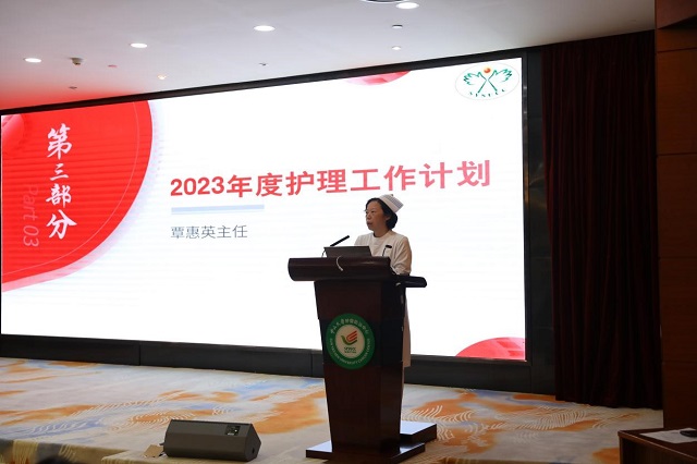 随后,覃惠英主任介绍了2023年的护理工作计划,包括护理质量管理、护理学科发展与护士队伍建设、优质护理、文化建设、分工安排五方面。