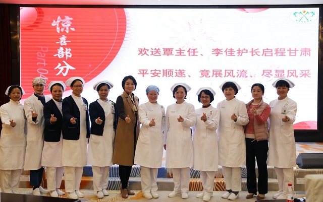 本次会议还欢送覃惠英主任和李佳护士长两位护理专家首批派驻国家区域医疗中心(中肿甘肃医院)开展工作,希望他们在甘肃工作顺利,用中肿的经验和技术造福西北人民。